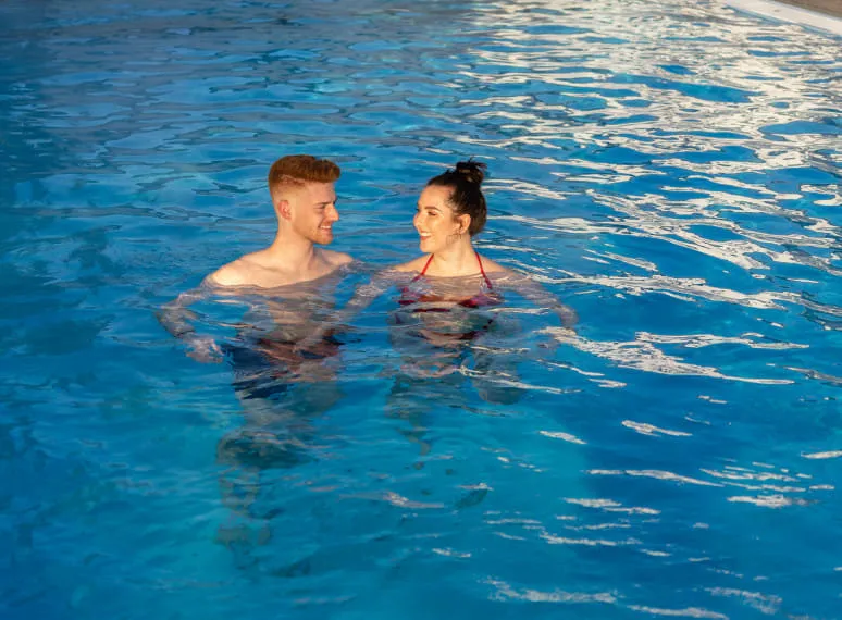 Für alle, die ganz viel Platz suchen, empfehlen wir unser Familien-Chalet mit ca. 115 m²: schöner Bungalow mit eingerichteter Küche, 2 Schlafzimmern, 2 Bädern und eigener Terrasse - exklusive Lage neben dem Outdoorpool.