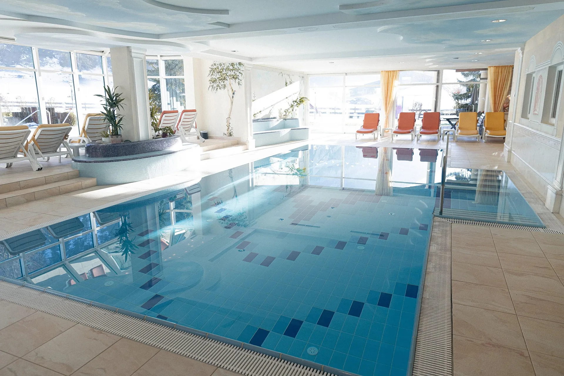 Relaxen Sie in unserem Wellnessbereich und erholen Sie sich von Ihrem Alltag. In eine der Saunen gehen, etwas schwimmen oder einfach nur im Whirlpool oder im duftenden Ruheraum abschalten - genießen Sie den Tag!